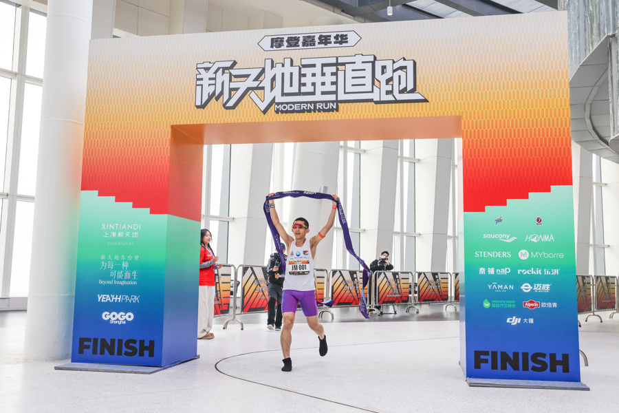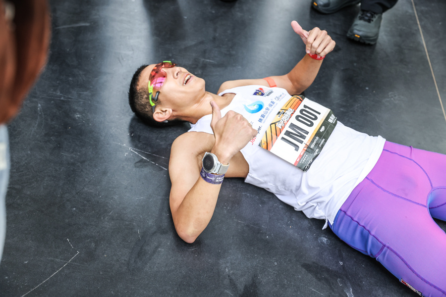 58 层,7分05秒!11月1日上午,来自马来西亚的选手Soh Wai Ching(苏为庆)首个冲过终点线,获得首届新天地垂直跑冠军。